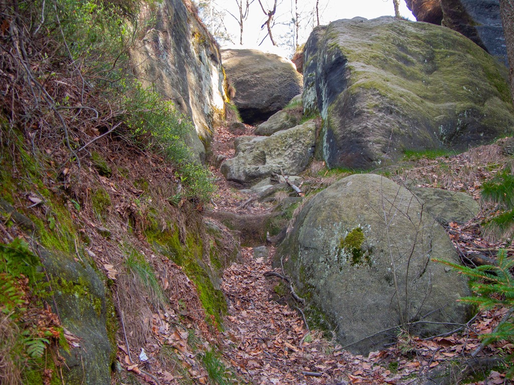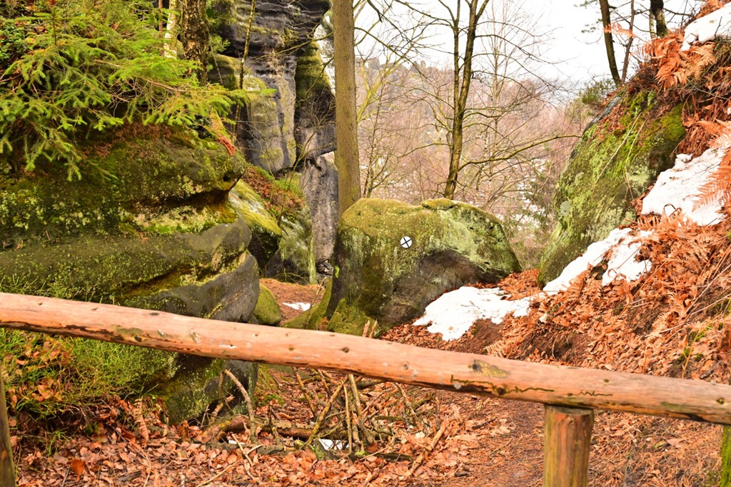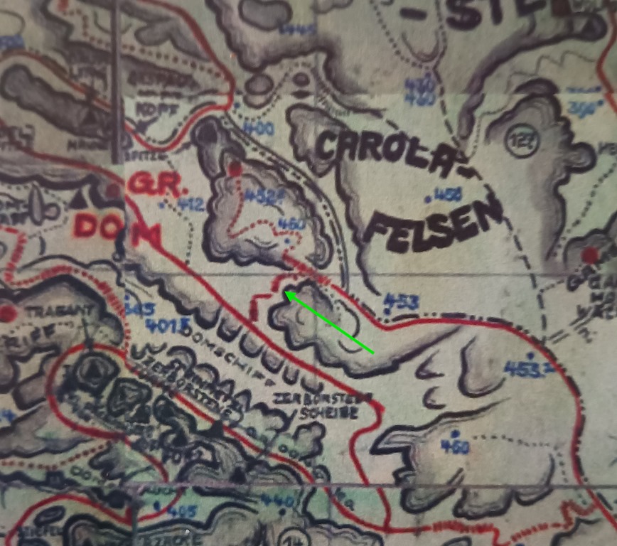 Auf diese Geschichte bin ich gestoßen, als ich mal wieder auf den Karten von OSM herumgeklickt habe. Oha, was sehe ich da: der südliche, historisch ältere, aber heute wenig benutzte, Aufstieg zum Carolafelsen ist verschwunden. Erst die “Objektabfrage” zeigte genaueres: